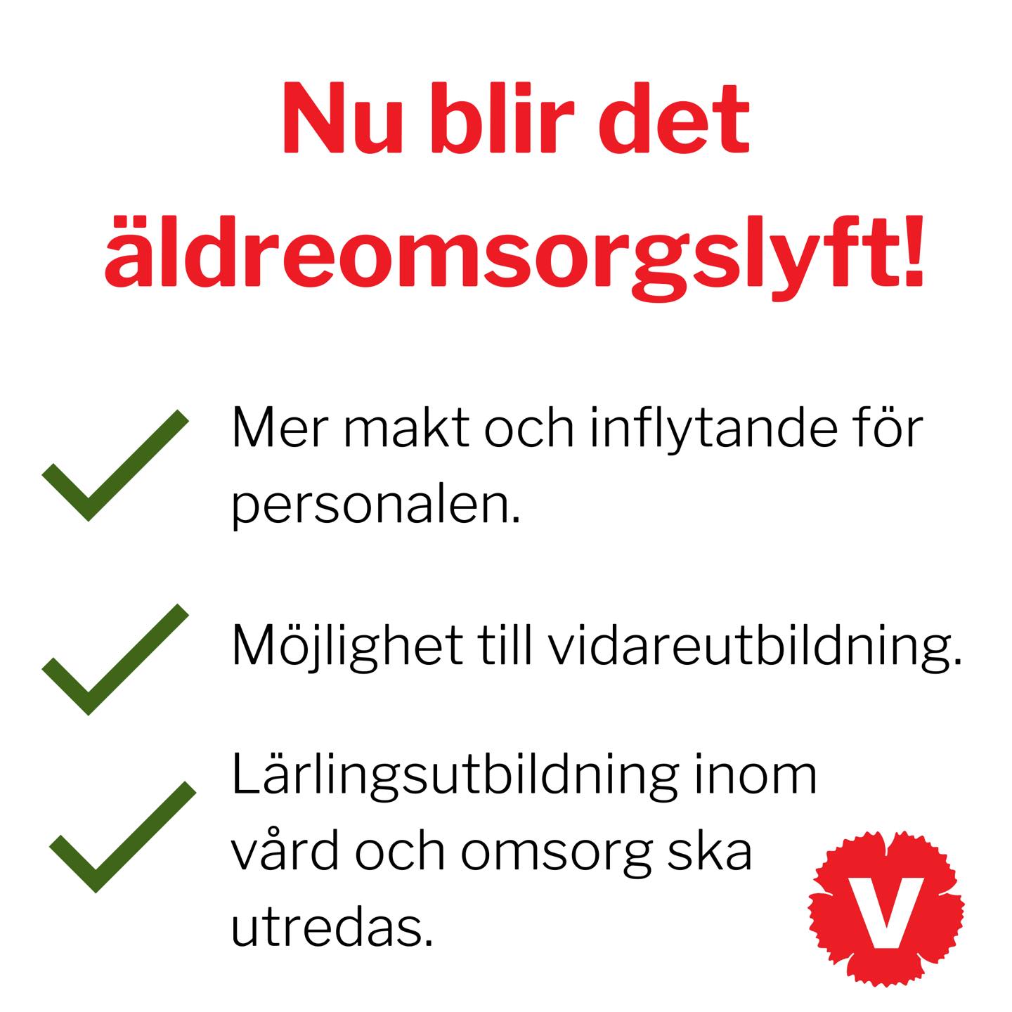 Nu blir det äldreomsorgslyft i Jönköpings kommun! Tack vare Vänsterpartiet blir det mer än applåder till personalen inom äldreomsorgen Redan i maj 2019 såg vi att det finns stora möjligheter att förbättra arbetsvillkoren och covid-19 har bara gjort motionen mer aktuell. Idag firar vi, imorgon fortsätter vi ta kampen för en god arbetsmiljö!
